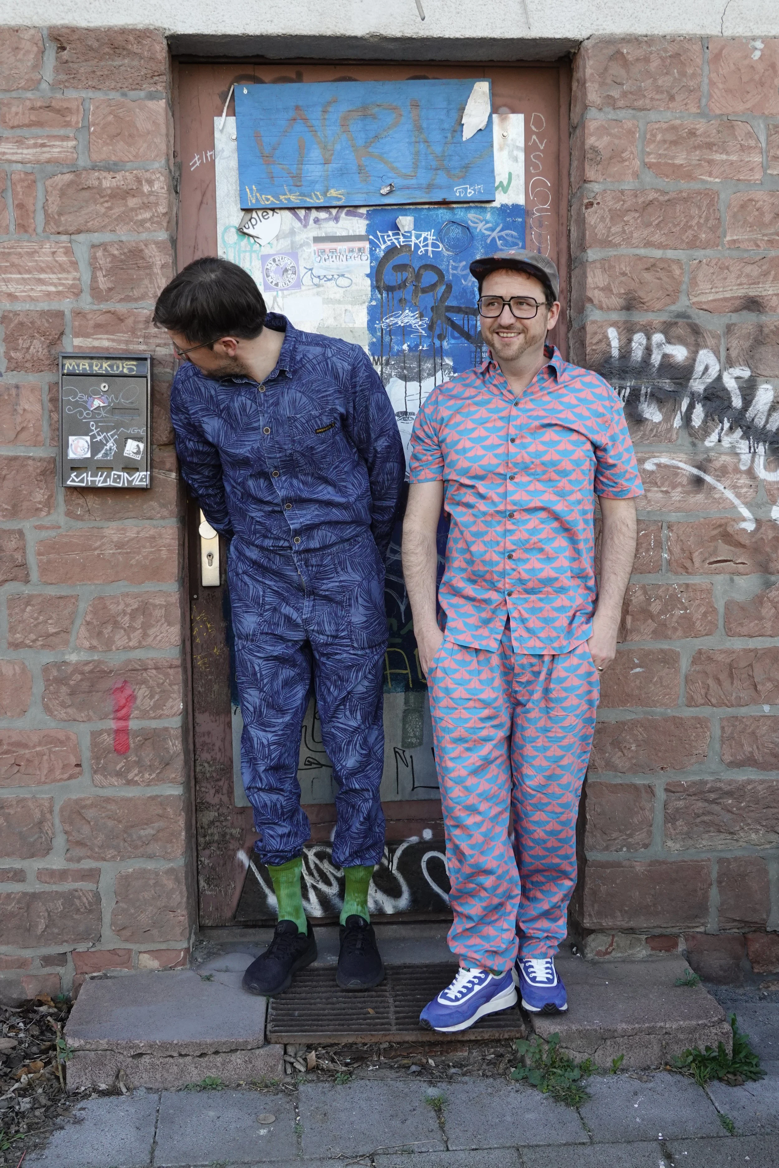 Da sitzen sie, Harry Hustler und Otto von Ohr, in ihren lustig farbigen, nein, Anzüge sind es ja dann doch nicht, Kleidungsstücke vielleicht, an ihren Geräten und dem Buch. Kolumnen und elektronische Klangstickereien. Warum nicht! Und bereits beim ersten Drehen an Knöpfen wird klar, O.v.O. hat einiges drauf: verspielte, sanft getimte, sich überschlagende Rhythmusmuster, Geräusch und neue Beats, es entstehen eigentümliche Klanglandschaften. Danach erste Texte. Die Themen reichen von Goldfischen, welche an Walti Stürm erinnern, über Nanoplastik-Skipisten bis hin zu Eichen, die sich über die Schuhe der Jogger beklagen. Schnell wird klar, es wird ein erfreulicher Abend, scharfsinnig beobachtete Miniaturen über menschliche, tierische und pflanzliche Unzulänglichkeit, übersetzt mit der subversiven Liebe der Worte. Und Schalk. Womit wir wieder bei der Kleidung, resp. beim Namen der Beiden sind: HaHu und OvO. Na denn prost!